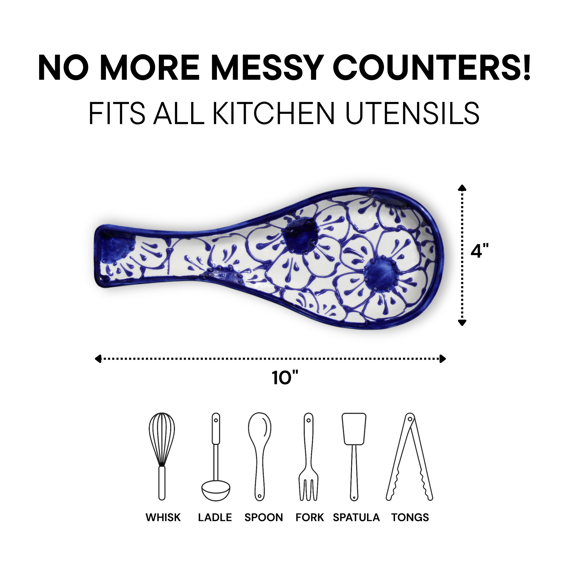✔️ RIGHT-SIZE CRADLE — Holds spoons, spatulas, and ladles (approx. 10" × 4").
